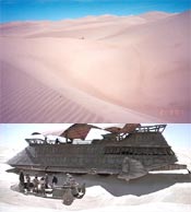 | The Return of the Jedi scenes with the battle at Jabba's Sail Barge above the Sarlacc Pit were filmed in Buttercup Valley, CA. The crew stayed nearby in Yuma, AZ at Stardust Motor Resort Motel which has since been replaced by a Fry's grocery store. |